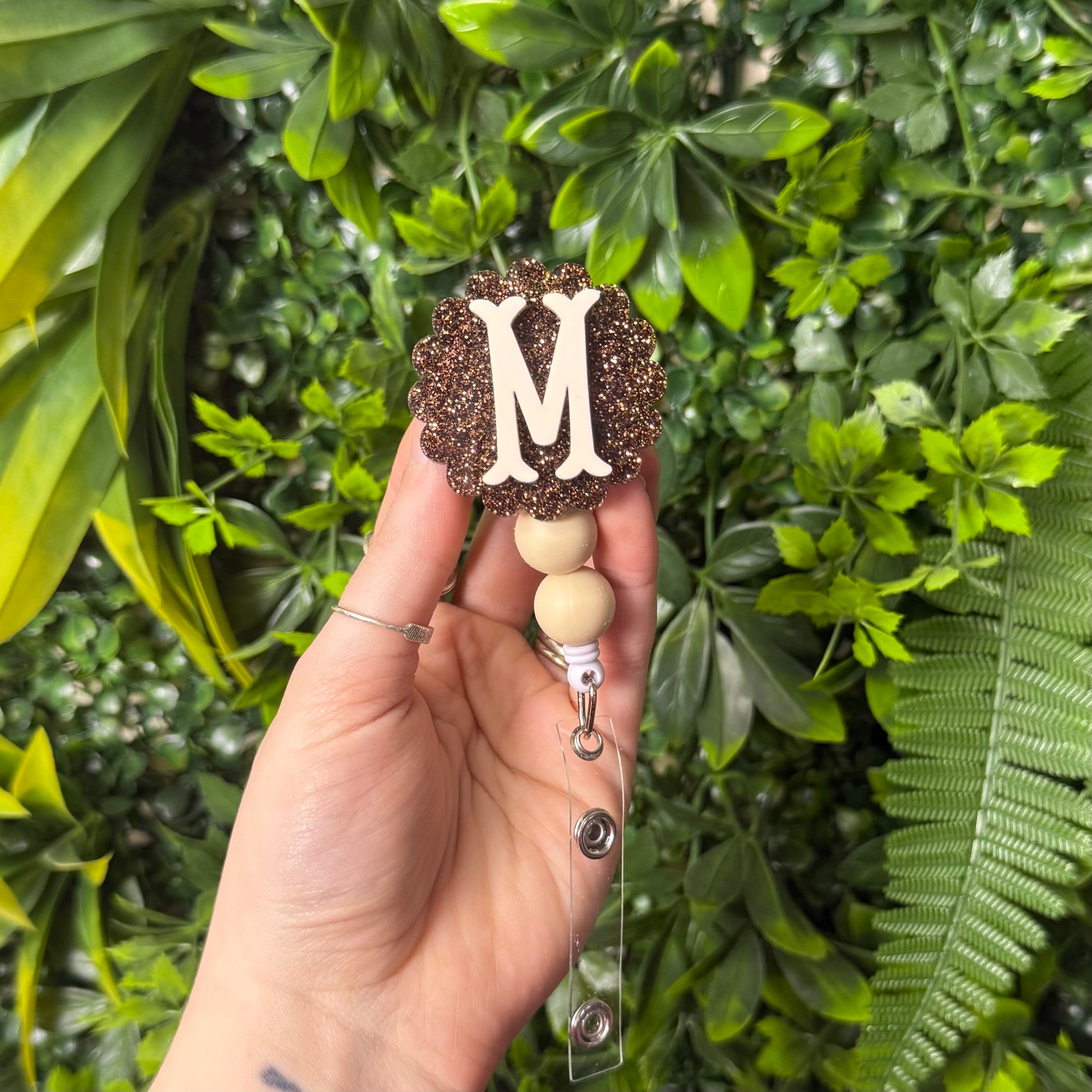 BEADS ON BADGE REELS WILL VARY DEPENDING ON AVAILABILITY.